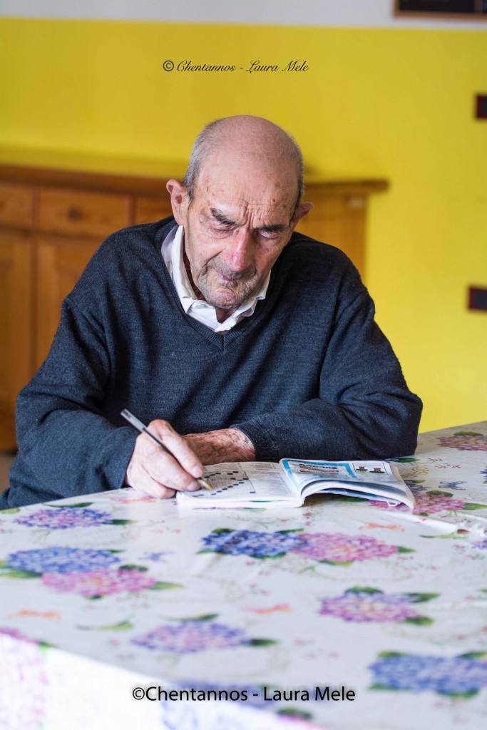 :<<Adesso mi tengo impegnato leggendo oppure mi piace molto fare i cruciverba.  Adoro scrivere ciò che mi ricordo di quando ero piccolo e infatti sto annotando le mie memorie su un quaderno. La tv non la guardo per niente in quanto ora l’udito mi sta dando qualche problema>>.